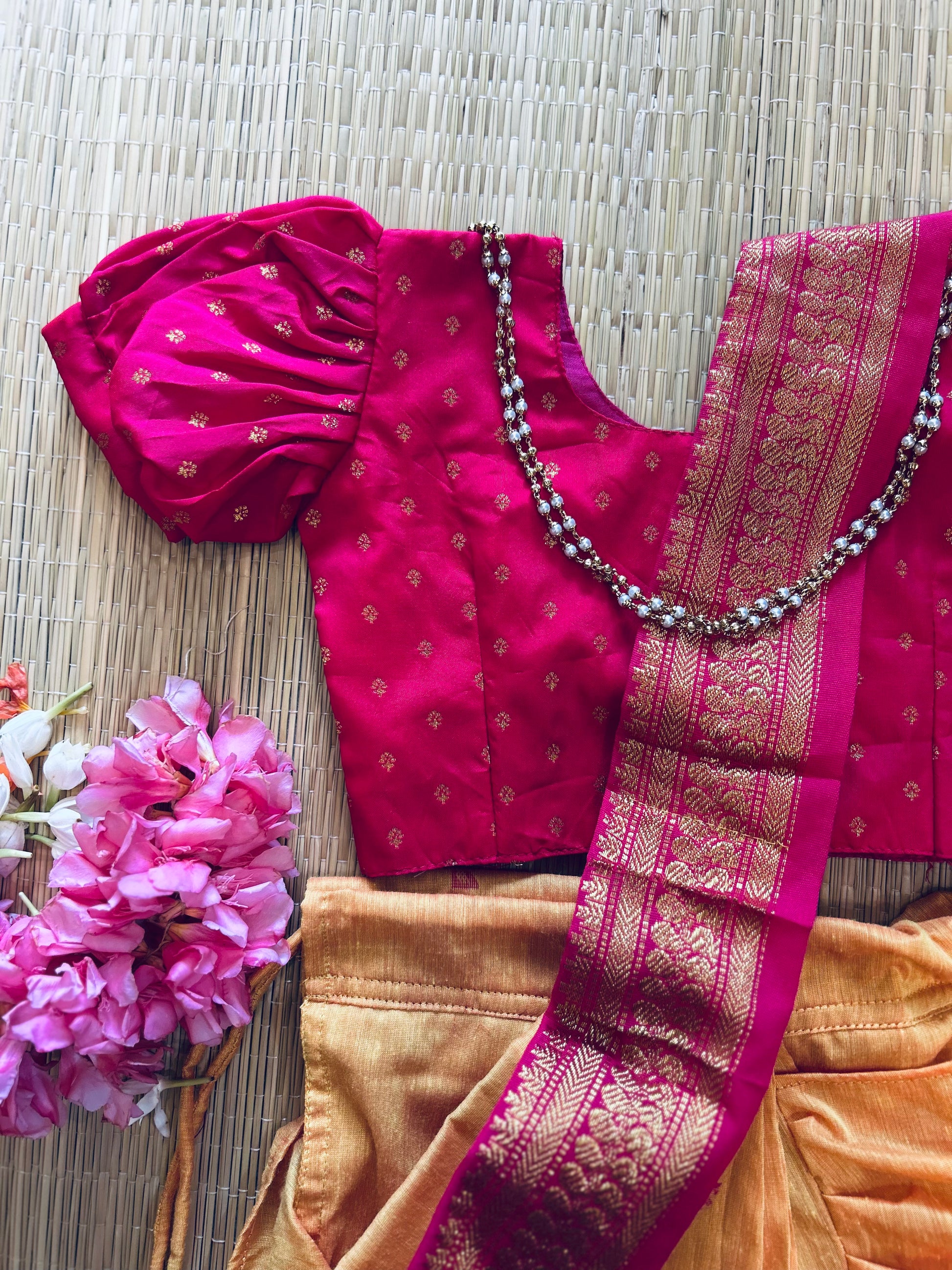 Mango yellow and festive pink - Ready to wear saree for kids Ethnic wear for baby girl