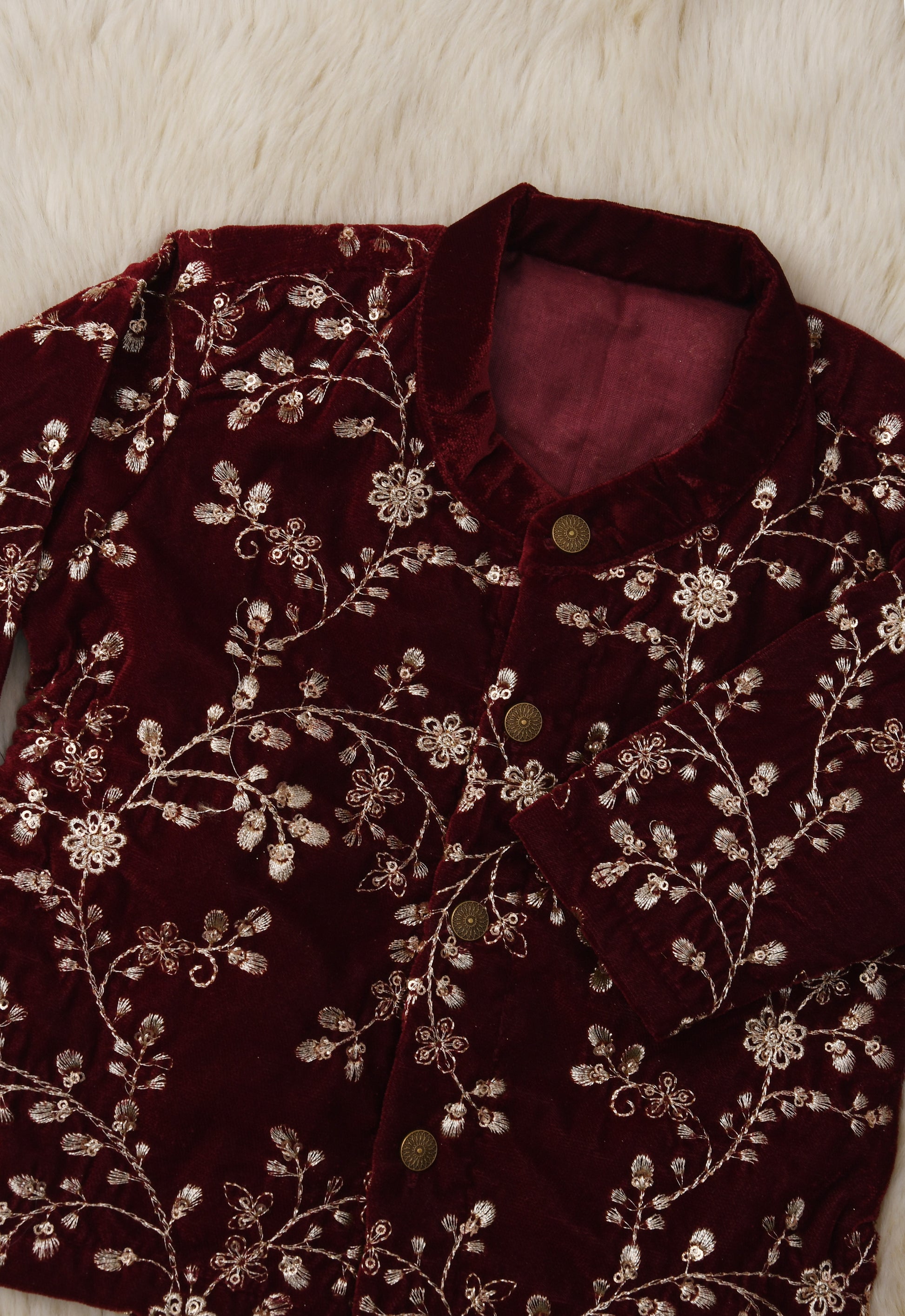 Maroon Velvet Kurta for baby boy ethnic top wear