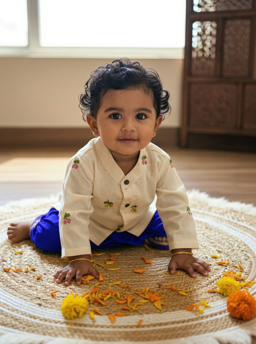 Pure Linen White with royal blue Kurta Dhoti ethnic wear for baby boy