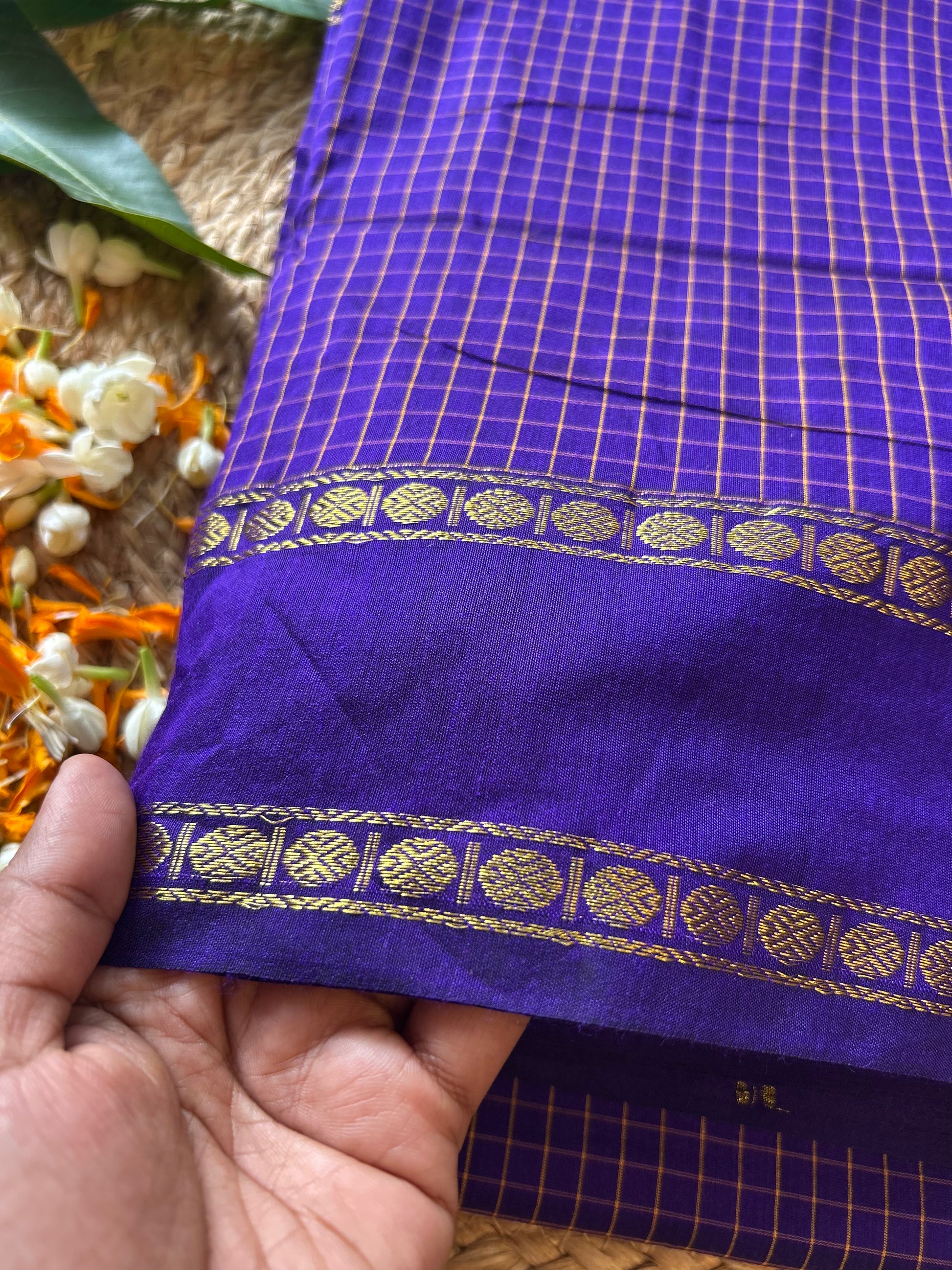 Purple - Premium Checked Cotton Silk Saree with Contrast Blouse