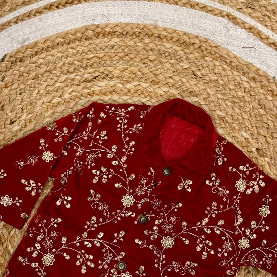 Red Velvet Kurta for baby boy ethnic top wear