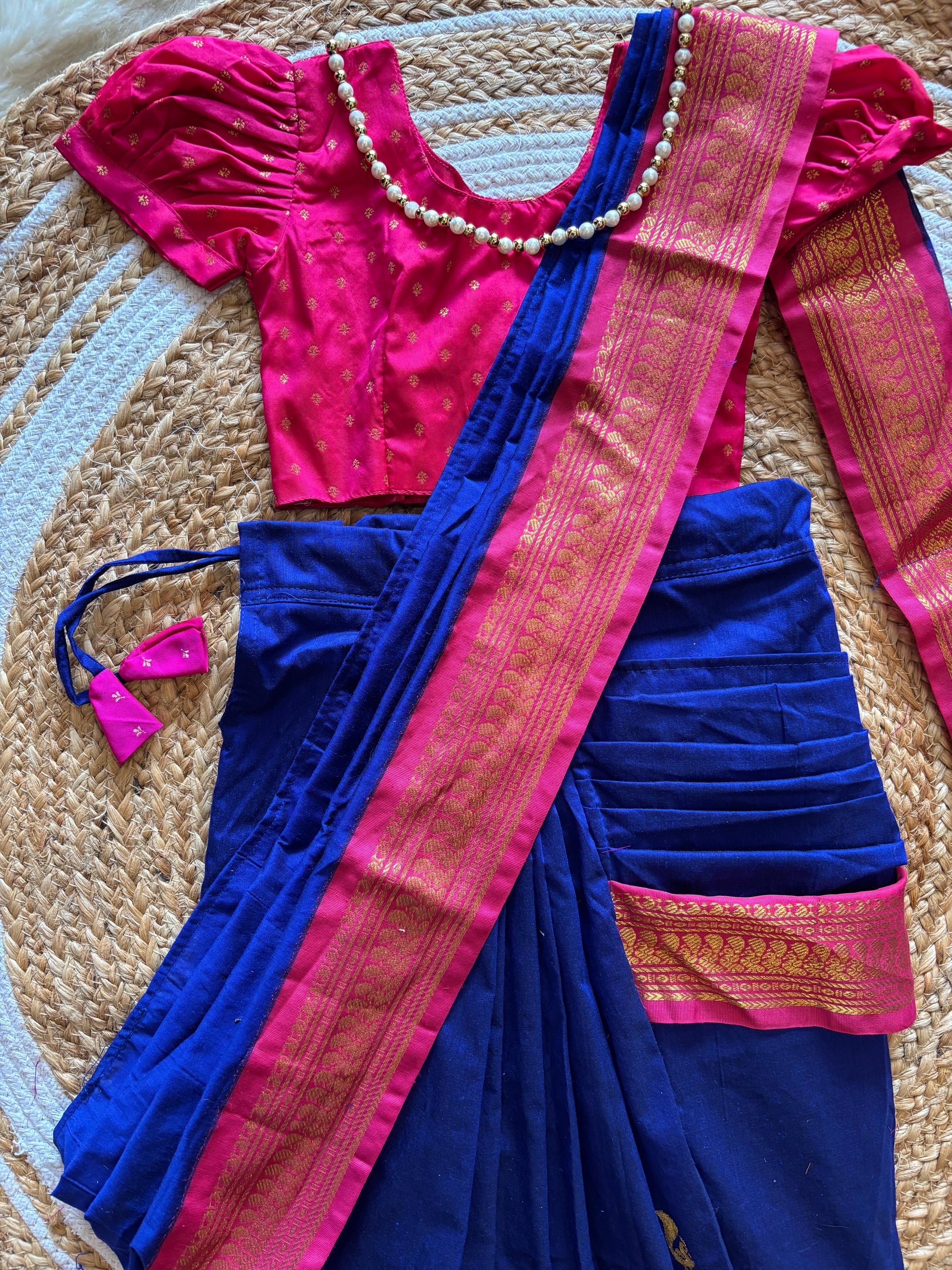 Royal blue and Pink - Ready to wear saree for kids Ethnic wear for baby girl