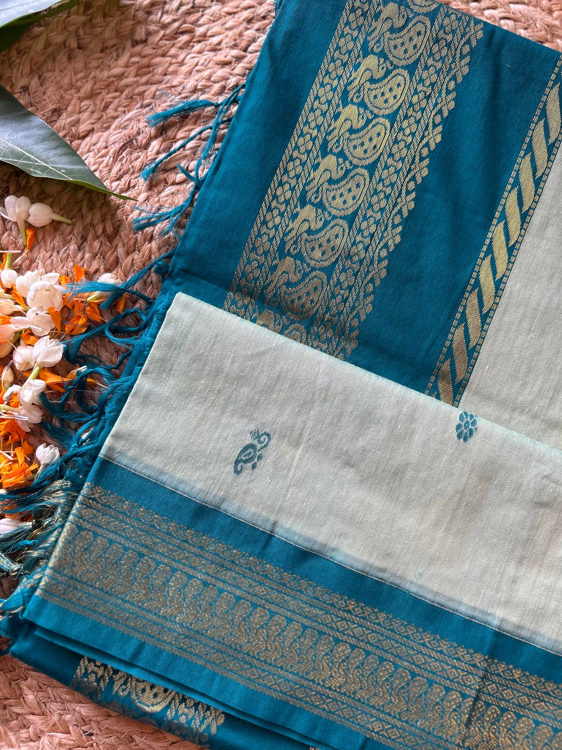 Rama Green - Premium Cotton Silk Saree with Contrast Blouse